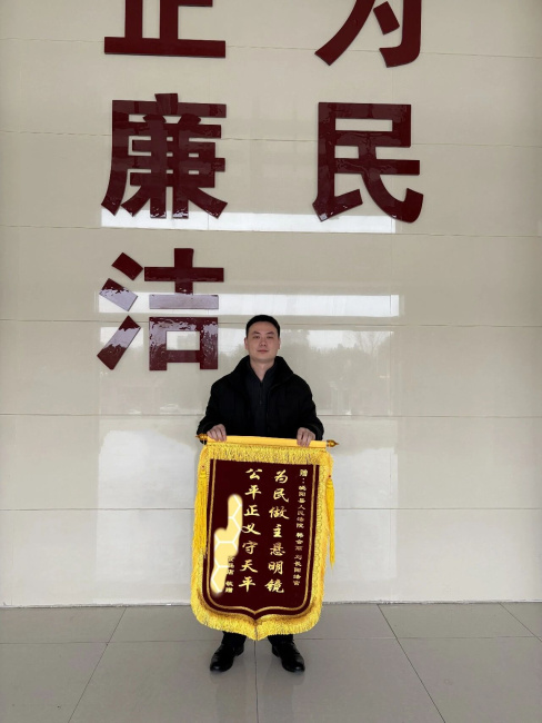“法官好,请问您收到我快递的锦旗了吗?如果不是离得太远,我一定亲自送到您手中!”2月24日,春节假期后开工首日,一面承载着由衷感激的锦旗跨越遥遥千里,送至泌阳法院院领导韩会丽及其法官助理刘长阳手中。锦旗上 “为民做主悬明镜,公平正义守天平” 的题字,字字镌刻着当事人对法院公正司法、高效解纷的认可。