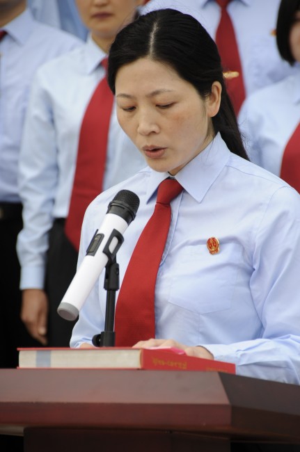 2017年5月15日下午17点,泌阳县人民法院隆重举行首批法官入额宪法宣誓仪式,39名员额制法官在国徽和国旗下庄严宣誓。党组书记、院长黄依群带领全体入额法官宣誓。县法院党组成员、政治处主任常琴宣读了《河南省高级人民法院关于批准驻马店市两级人民法院首批法官入额的决定(泌阳)》。